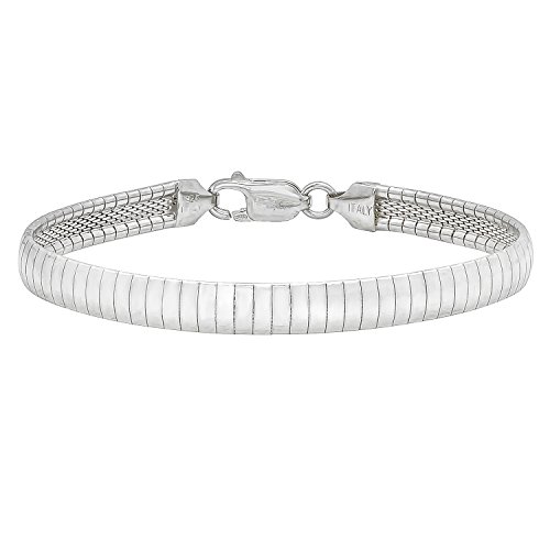 - This genuine sterling silver solid link style 5.8mm omega bracelet is made in Italy extending to a length of 8 inches and finished in a sturdy lobster claw clasp