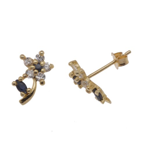 Best Seller! Adara 9 ct Gold Cubic Zirconia and Sapphire Flower Stud Review