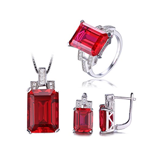 Best Seller! Jewelrypalace Luxury Emerald Cut 30.8ct Created Red Ruby Jewelry Sets Cocktail Ring Pendant Necklace Clip On Earrings 925 Sterling Silver Size r Review